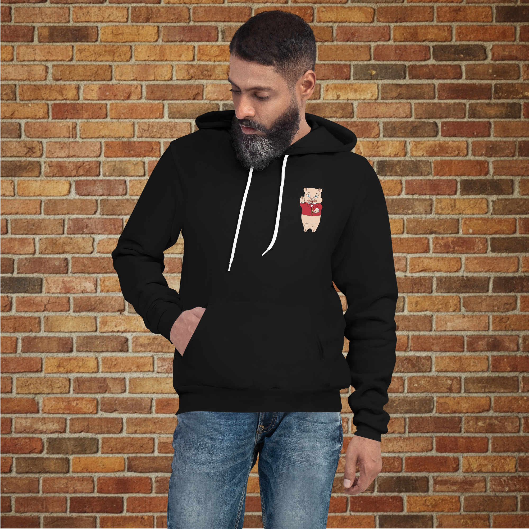 - Classic pullover hoodie with Rudy’s Bar & Grill logo