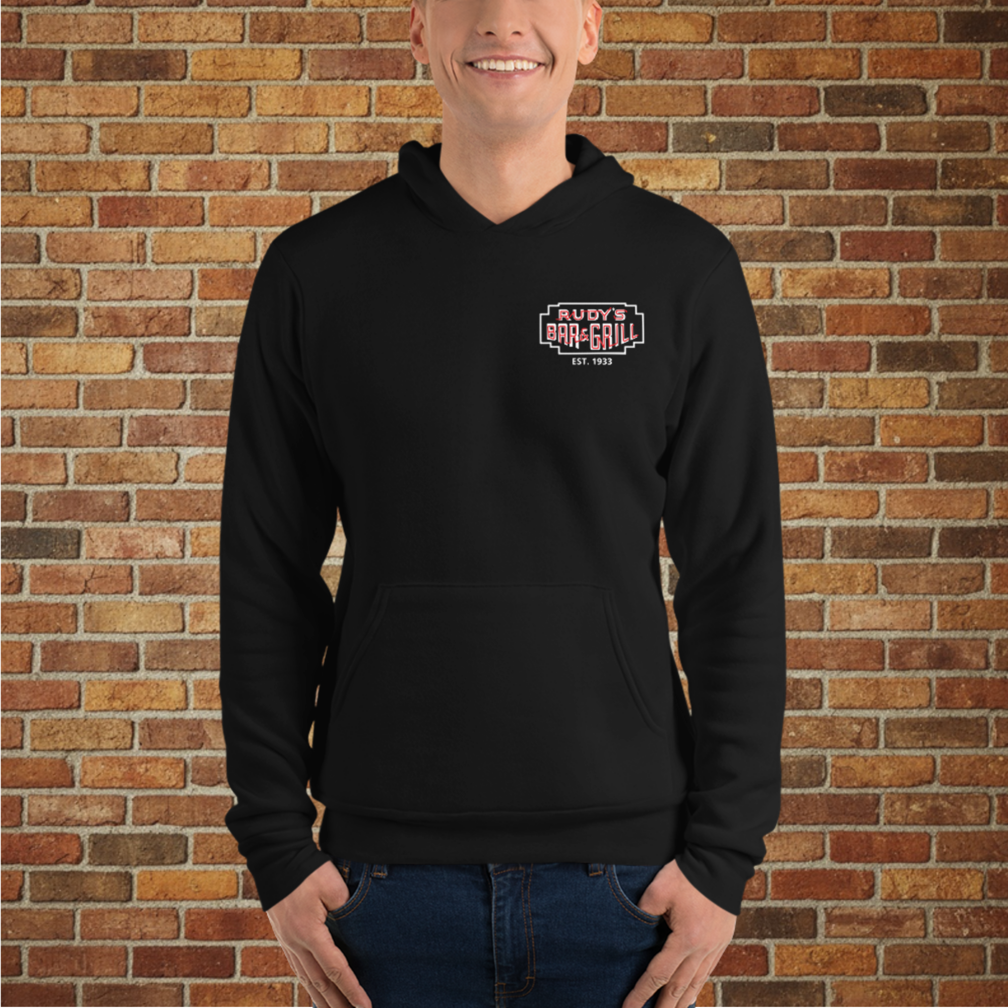 Whether you’re grabbing a beer at the bar or just want to remember the good times, this hoodie brings a little bit of Rudy’s home with you.