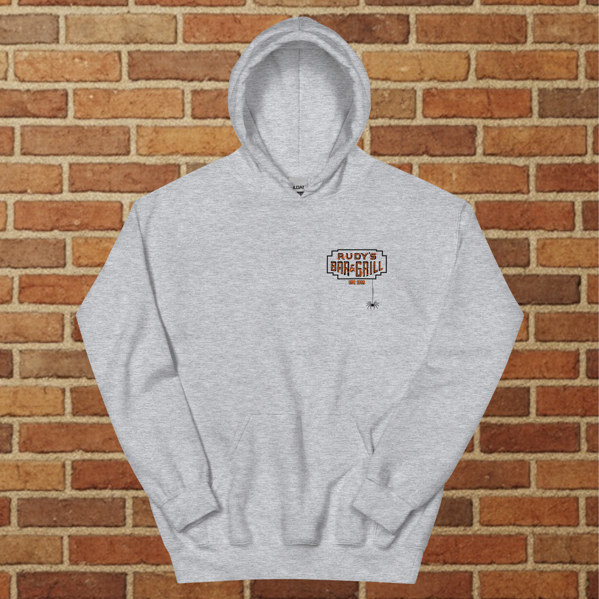 - Rudy’s Bar & Grill logo detail on front