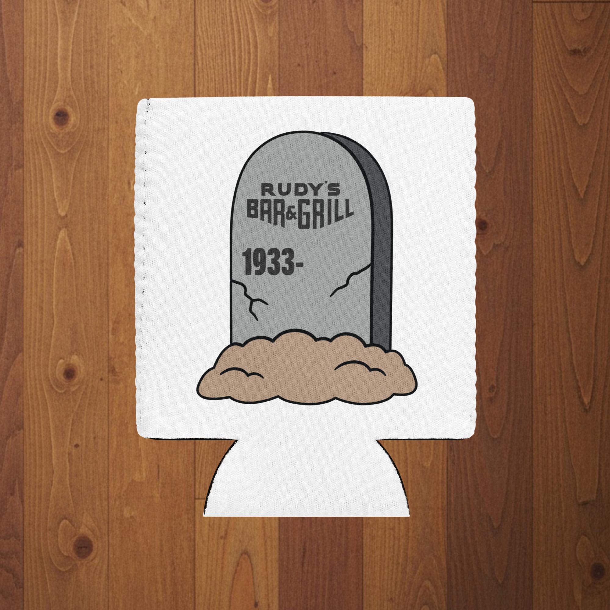This spooky koozie features a haunting tombstone design with the Grim Reaper—perfect for Halloween parties, bar crawls, or a night at Rudy’s.