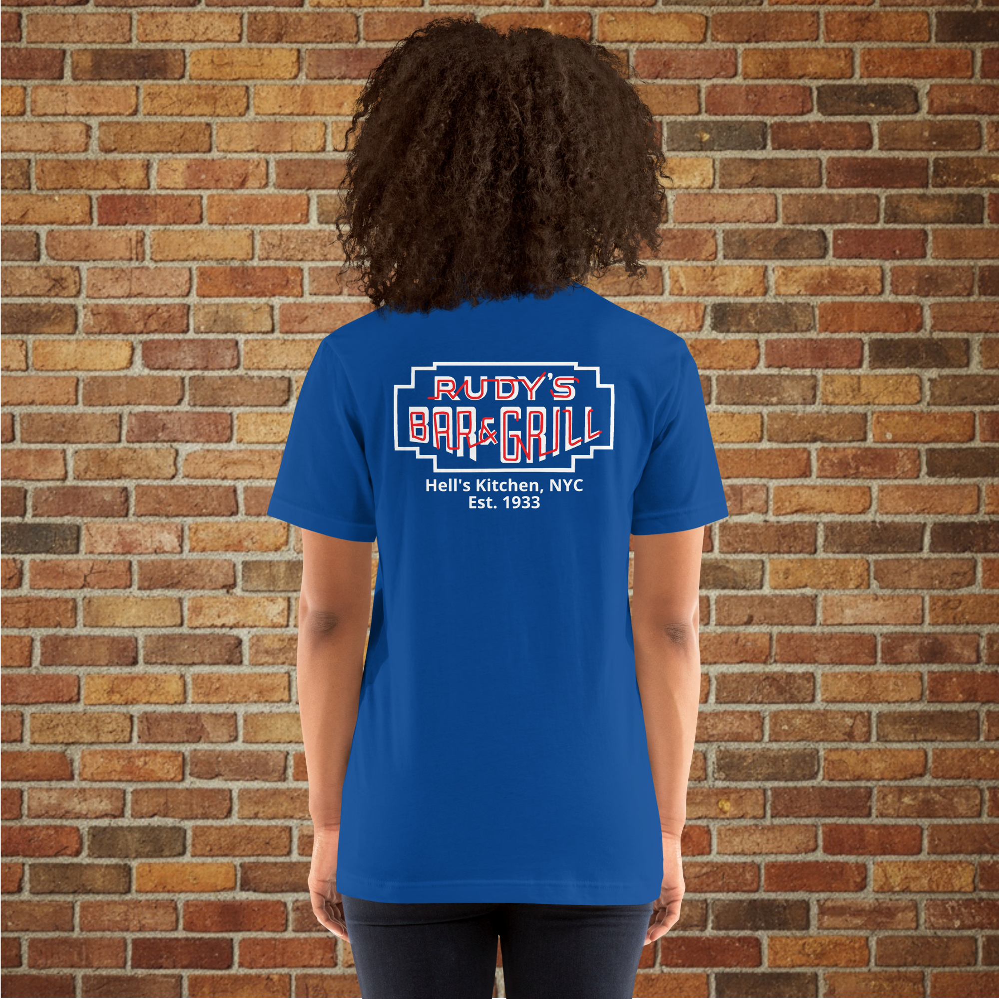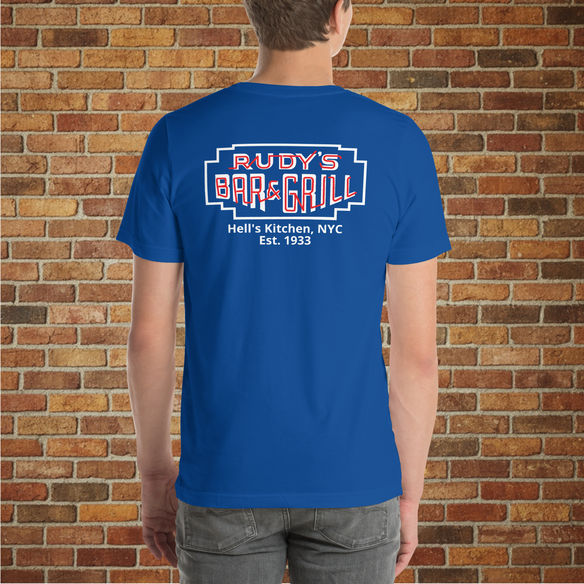 Slip on this tee and carry a piece of Hell’s Kitchen history wherever you go. Only at Rudy’s—where the stories (and the beer) never stop flowing.