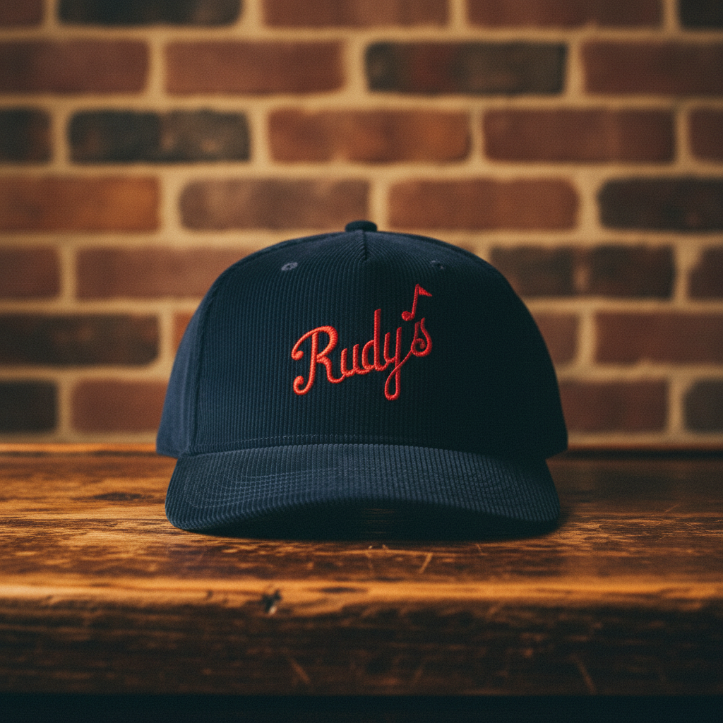 Classic bar style, built for everyday wear. The Rudy’s Bar & Grill Corduroy Snapback Hat features a rich navy blue corduroy construction with a bold embroidered red “Rudy’s” script logo on the front. Inspired by old-school dive bar culture, this hat delivers a timeless look with a comfortable, broken-in feel.