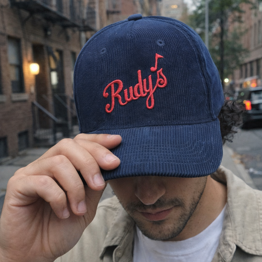 Designed with a structured crown, curved brim, and adjustable snapback closure, this corduroy baseball cap offers a secure, customizable fit for all-day wear. The textured corduroy fabric adds durability and character, making it perfect for nights out, casual days, or repping Rudy’s wherever you go.