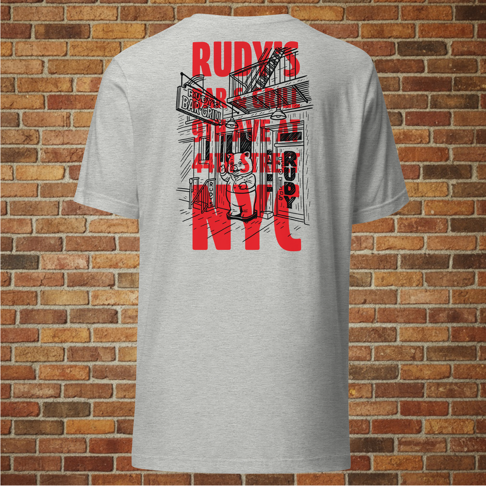 This Rudy’s Bar & Grill Front Logo Unisex T‑Shirt is the same classic design you see when you walk up 9th Avenue—simple, bold, and straight to the point. No frills, no fancy nonsense. Just a comfy tee repping your favorite Hell’s Kitchen bar.