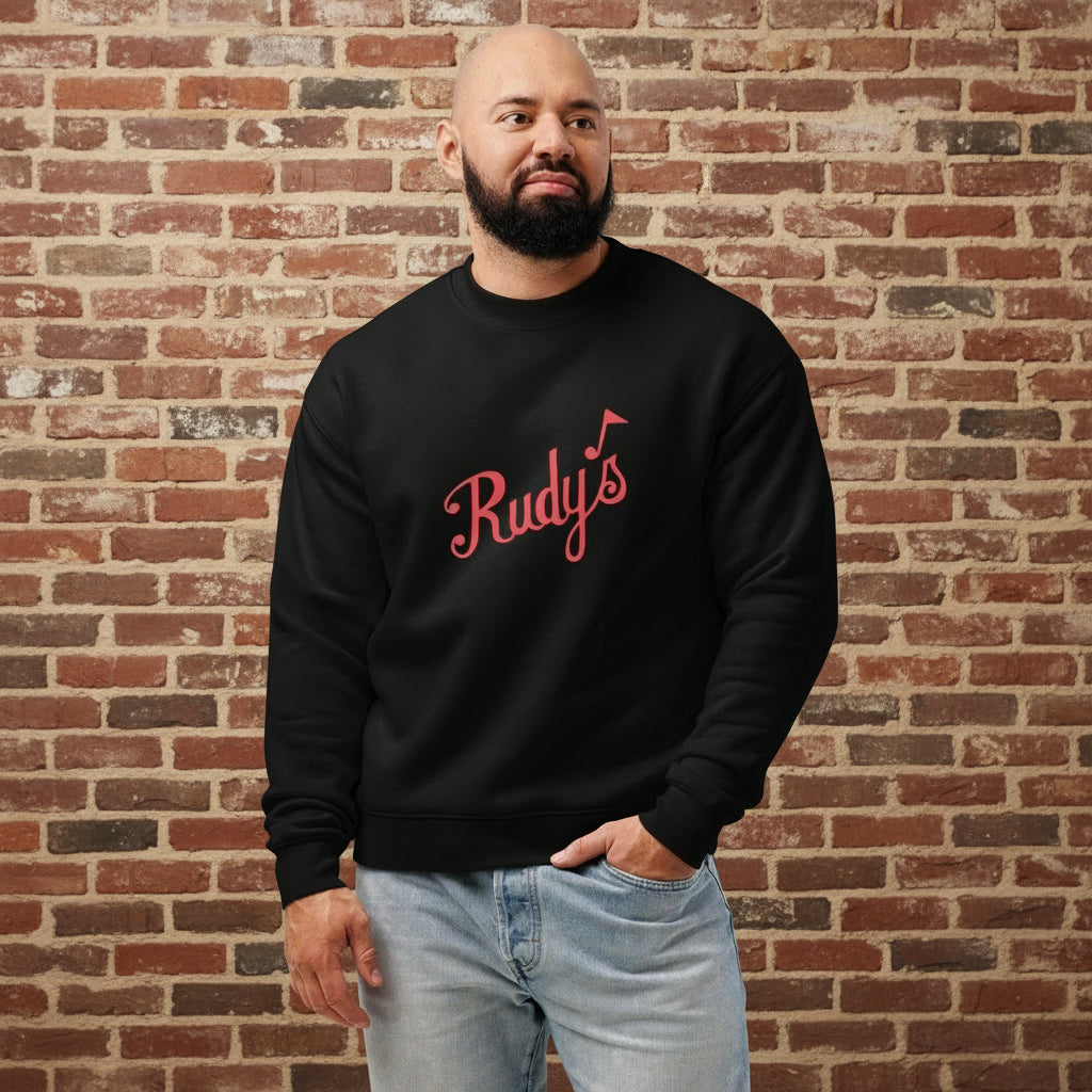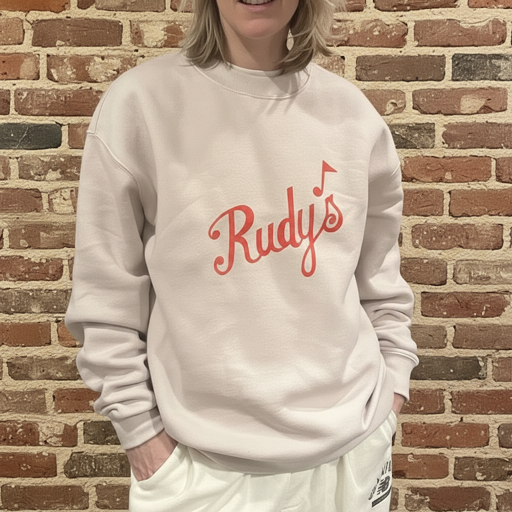 Bring a little Hell’s Kitchen history into your everyday rotation. This relaxed Rudy’s crewneck is soft, simple, and built for long nights.