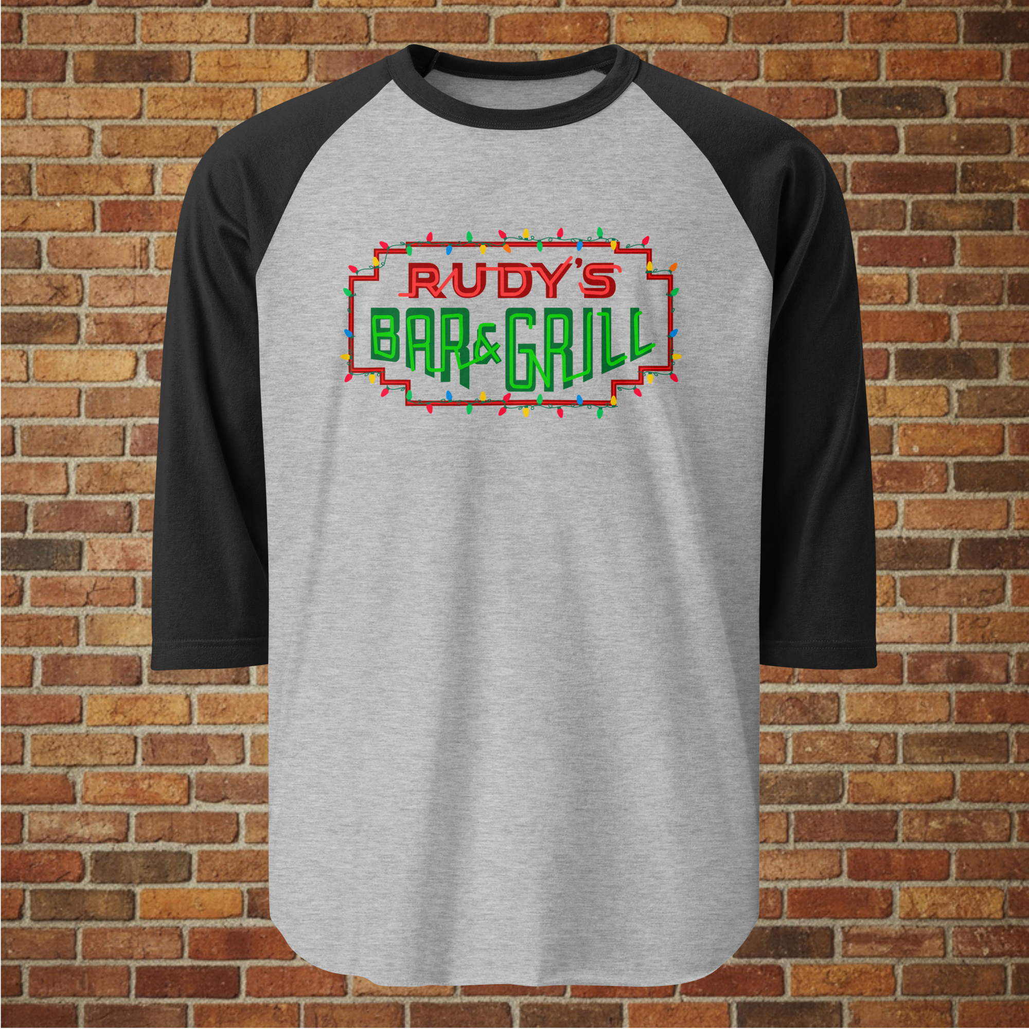 Rudy’s Bar NYC Christmas Neon Sign 3/4 Sleeve Raglan Shirt