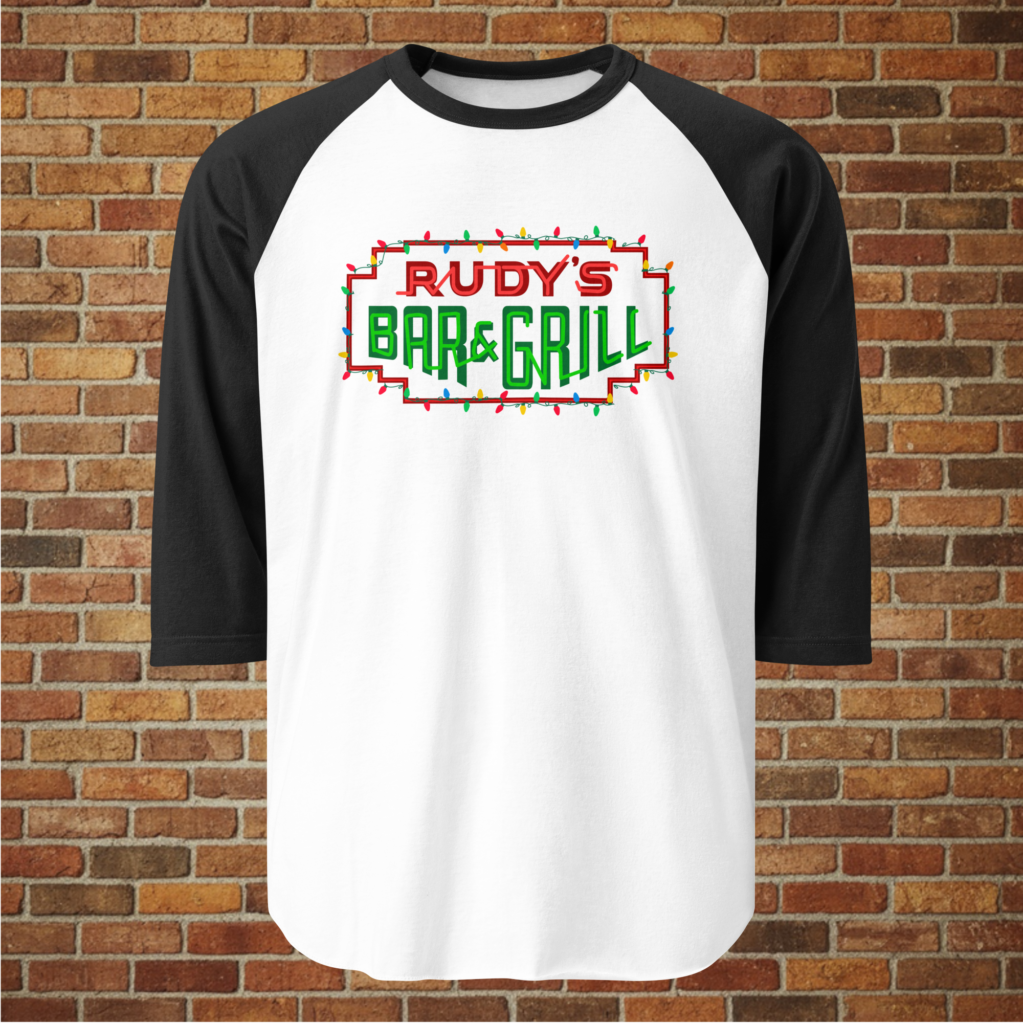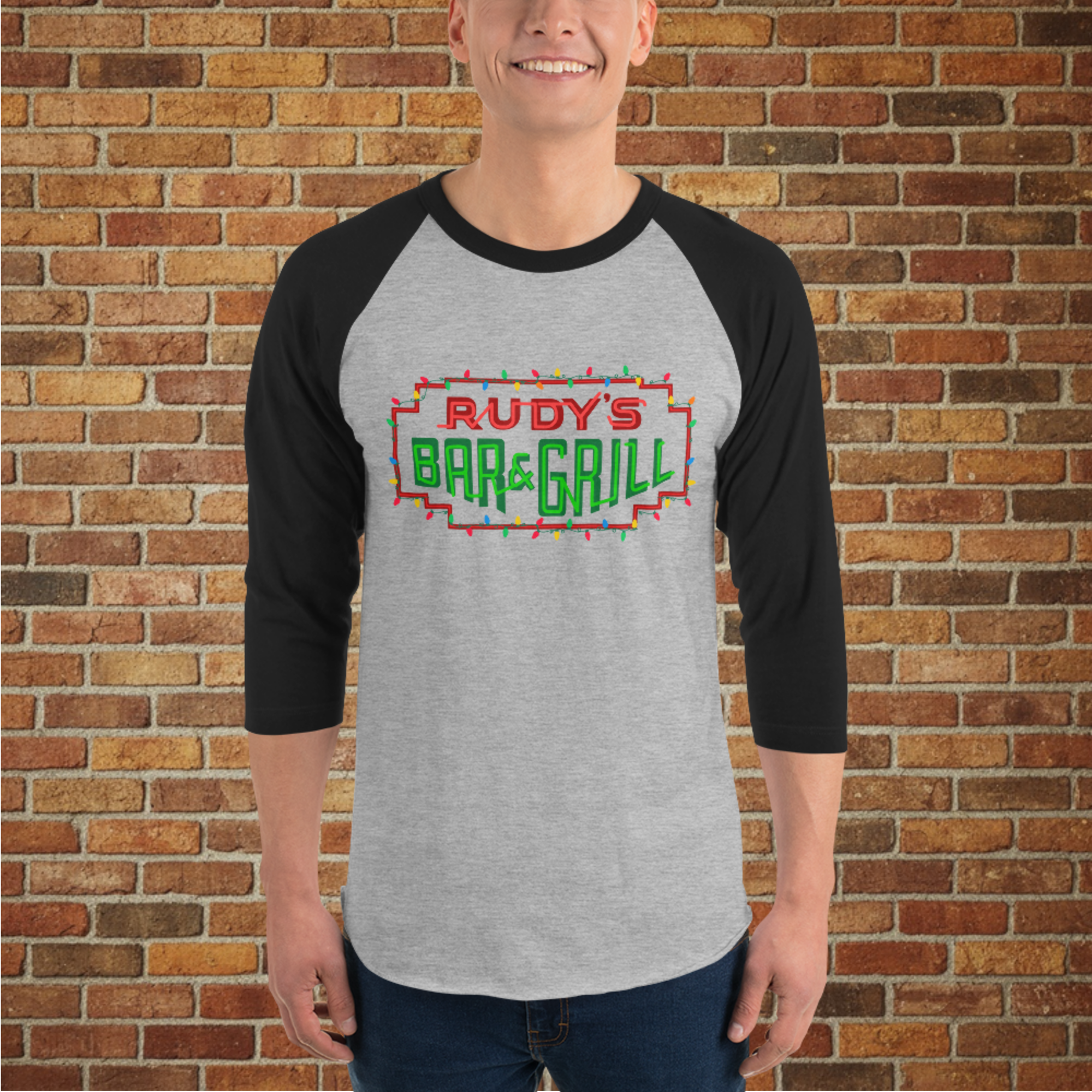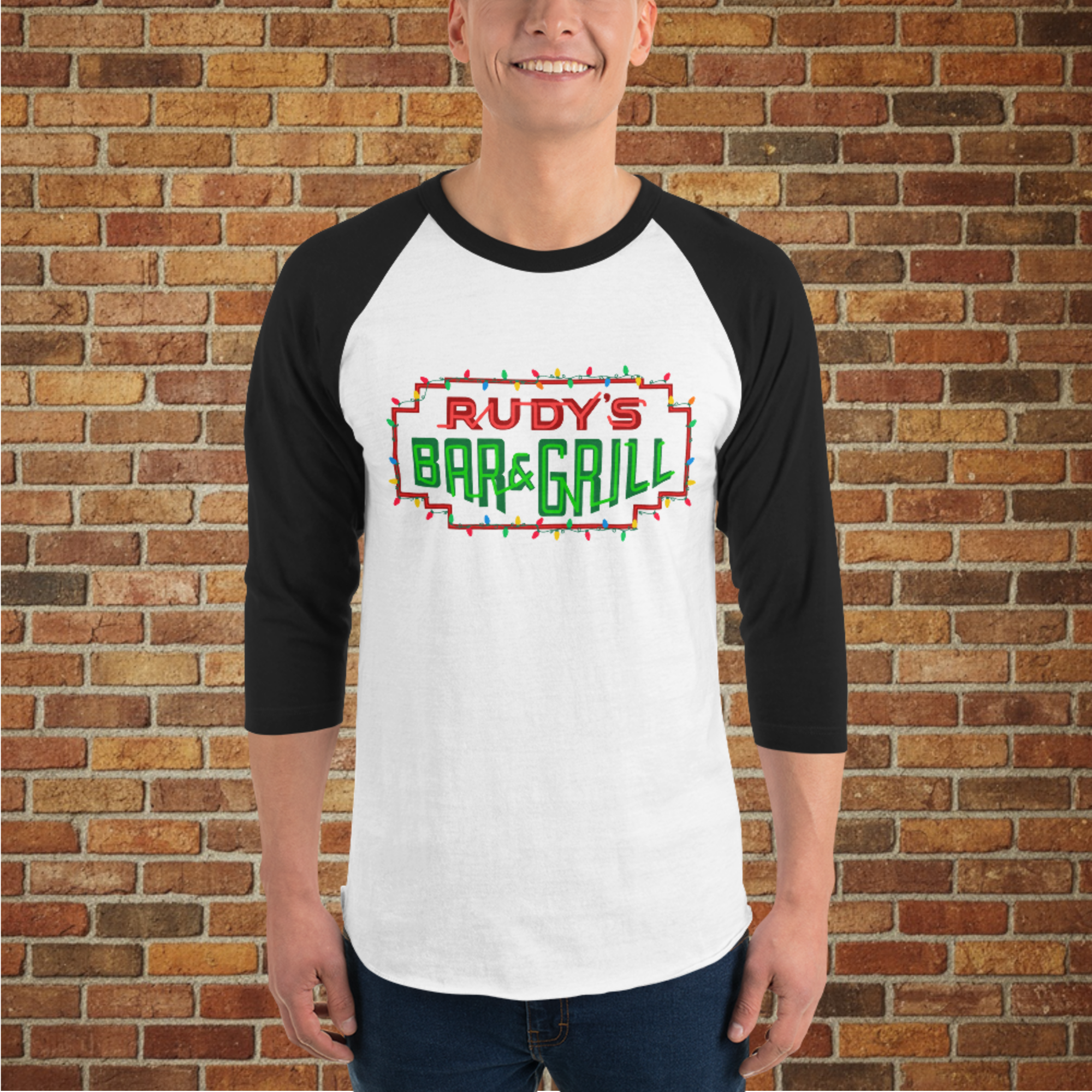 Celebrate the holidays in classic NYC style with our exclusive Rudy’s Bar Christmas Neon Sign Raglan Shirt! This 3/4 sleeve baseball tee features a festive neon sign design inspired by the iconic lights of Rudy’s Bar & Grill, a legendary Hell’s Kitchen destination since 1933.