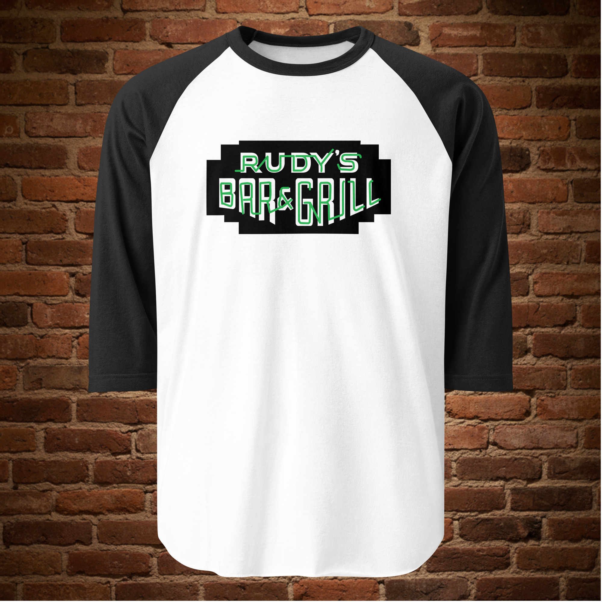 The Rudy's Bar & Grill St. Patrick's Day 3/4 sleeve raglan shirt is the perfect baseball raglan for this St. Patricks Day. It features a St. Patricks Day version of our historic Neon Sign that hangs outside the bar in Hell's Kitchen, New York City since 1933. The raglan shirt has a cotton blend making it super soft, comfortable, and lightweight.