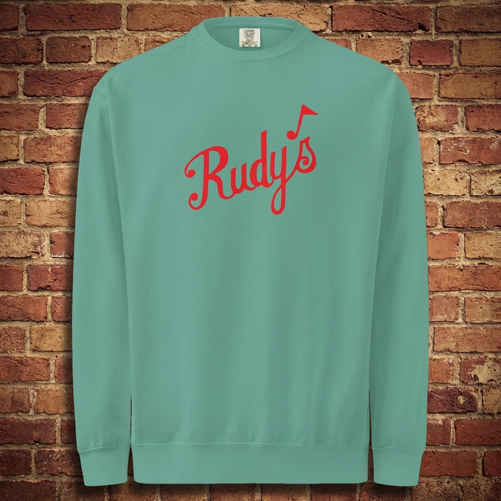 Celebrate St. Patrick’s Day the Rudy’s way: simple, loud, and built for long nights. This seafoam crewneck features the classic Rudy’s script in bold red—clean front hit, easy to wear, and made for bar crawls, after-hours Hot Dogs, and everything in between.
