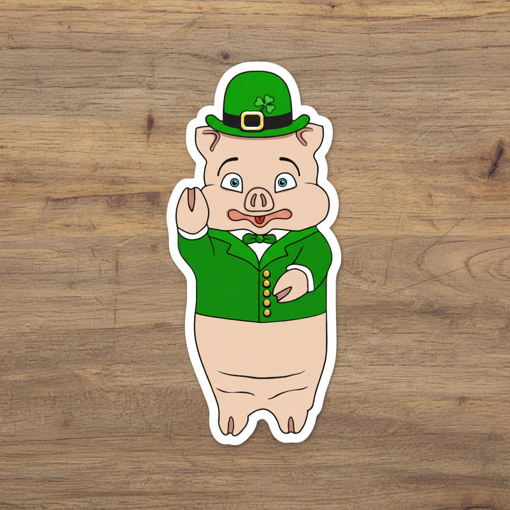Looking to add some festive fun to your space? Look no further than the St. Patrick's Day Pig Sticker from Rudy's Bar & Grill! Our beloved pig mascot Baron Von Swine gets a holiday makeover, standing proud in front of our Hell's Kitchen bar in New York City. These high-quality stickers are made with durable, bubble-free vinyl so you can stick them just about anywhere. Get ready to party with our playful pig sticker!