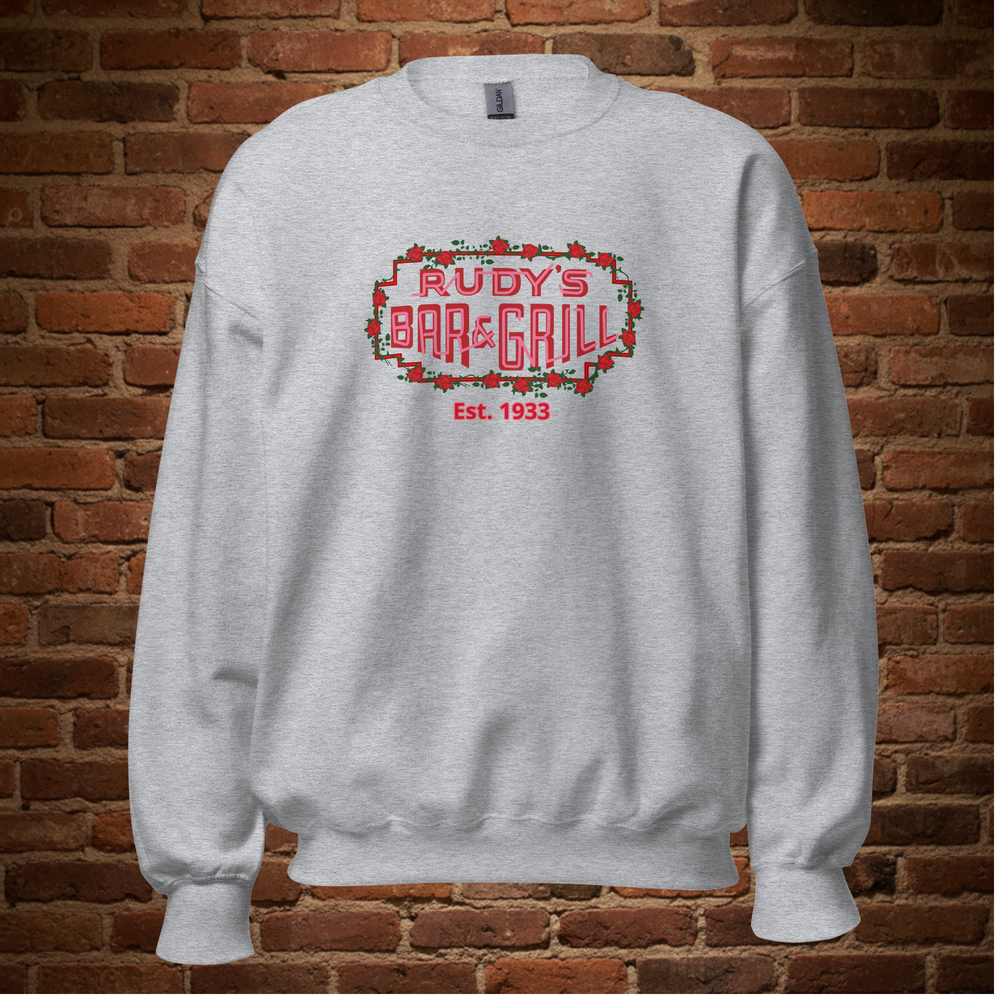 Rep real Hell’s Kitchen style with the Rudy’s Bar & Grill Neon Sign Valentine’s Day Sweatshirt. This crewneck’s got that classic Rudy’s neon logo—roses, grit, and all—front and center. Cozy, tough, and built for late nights or cold mornings, just like the bar. Throw it on, hit the town, or keep it casual at home. No frills, just a straight-up NYC original. Perfect for locals, regulars, and anyone who wants a piece of old-school New York.