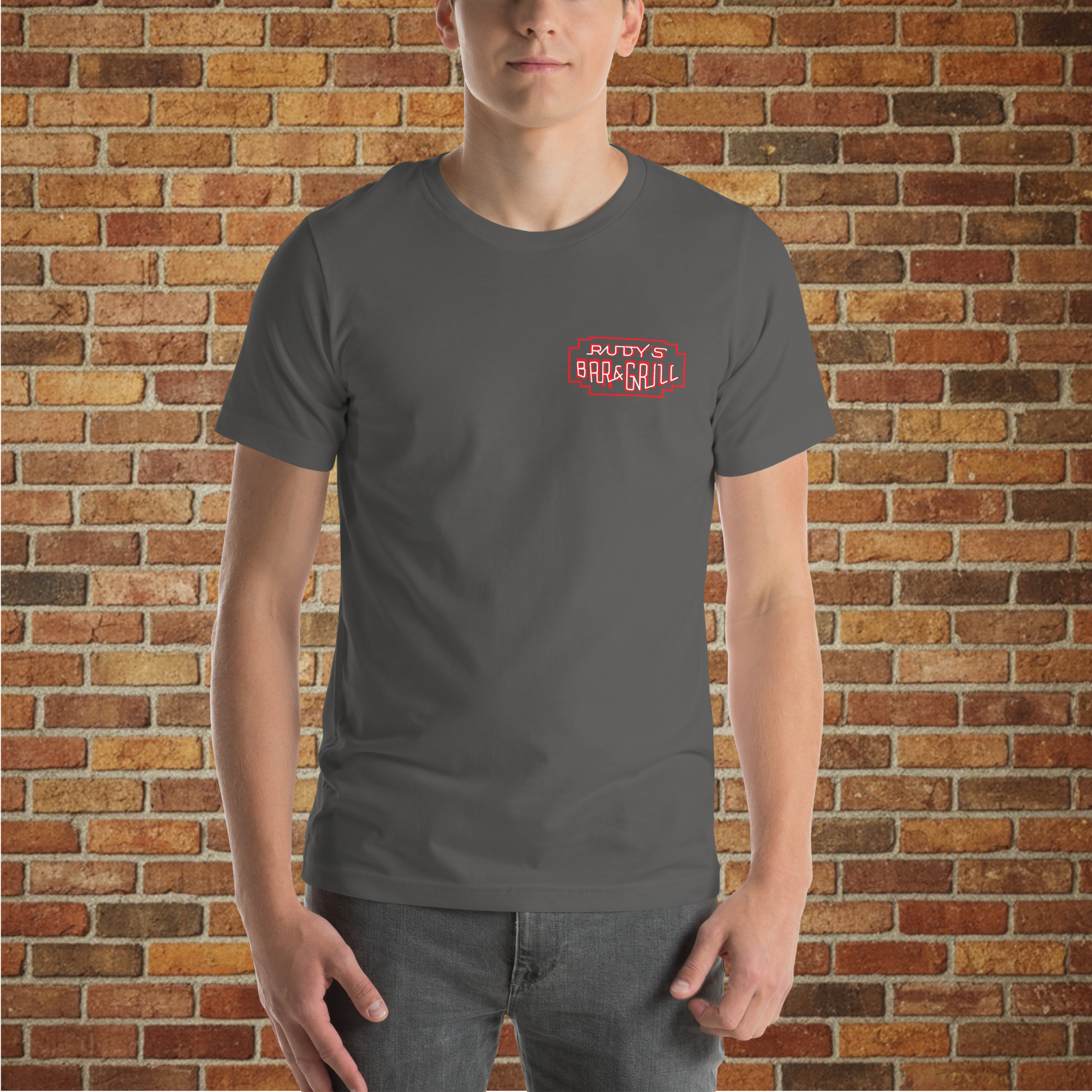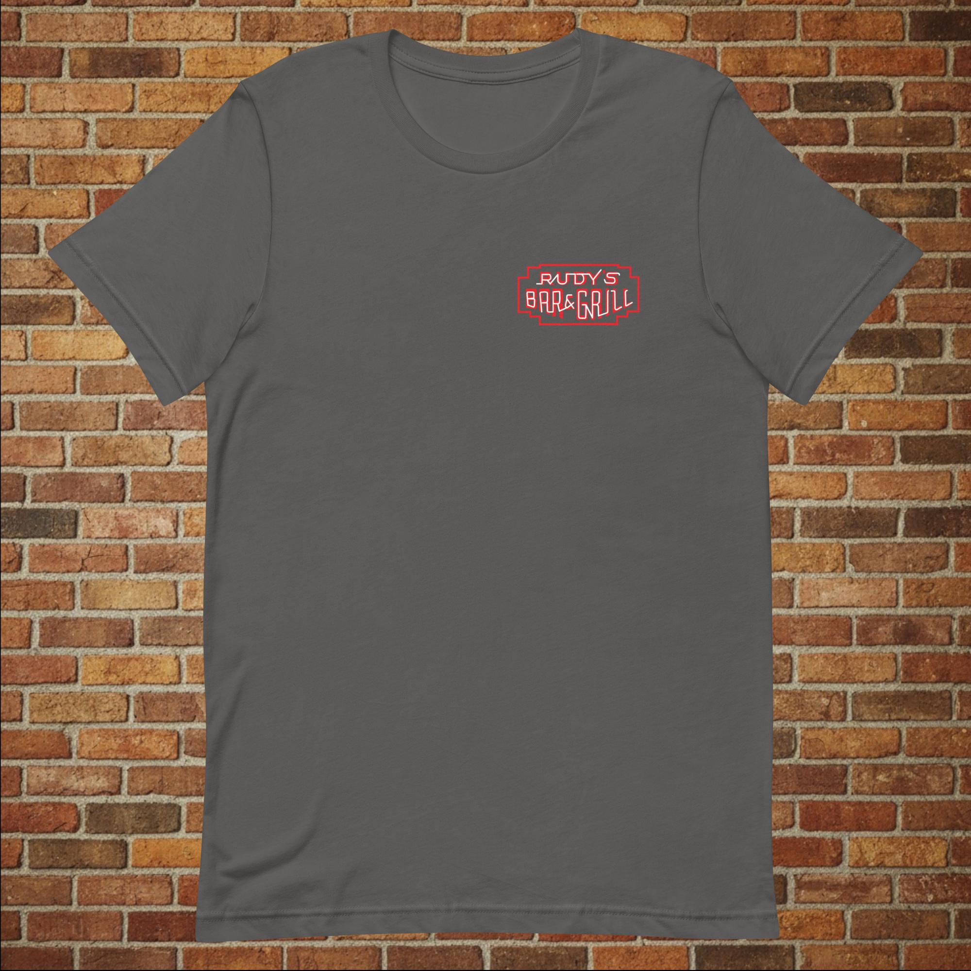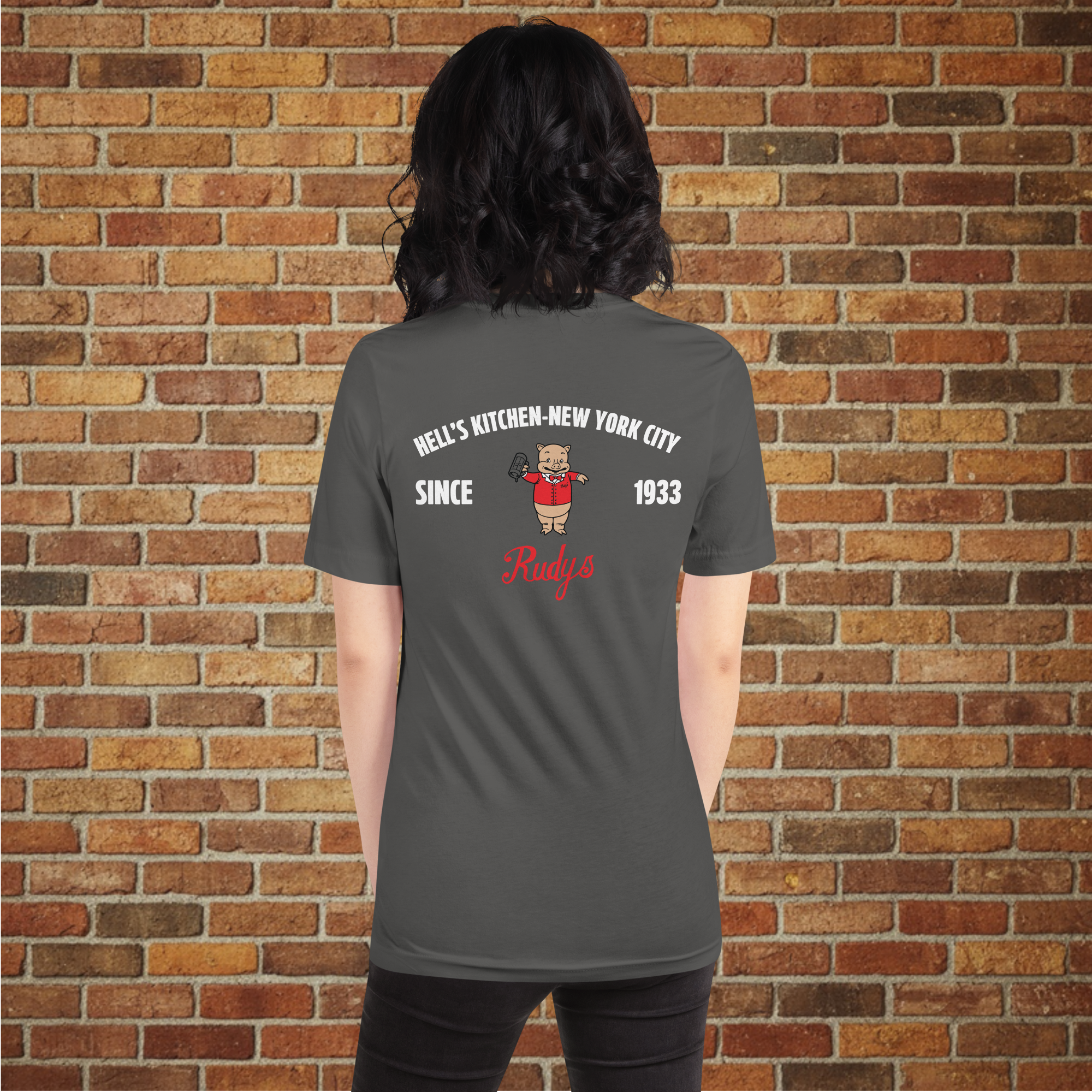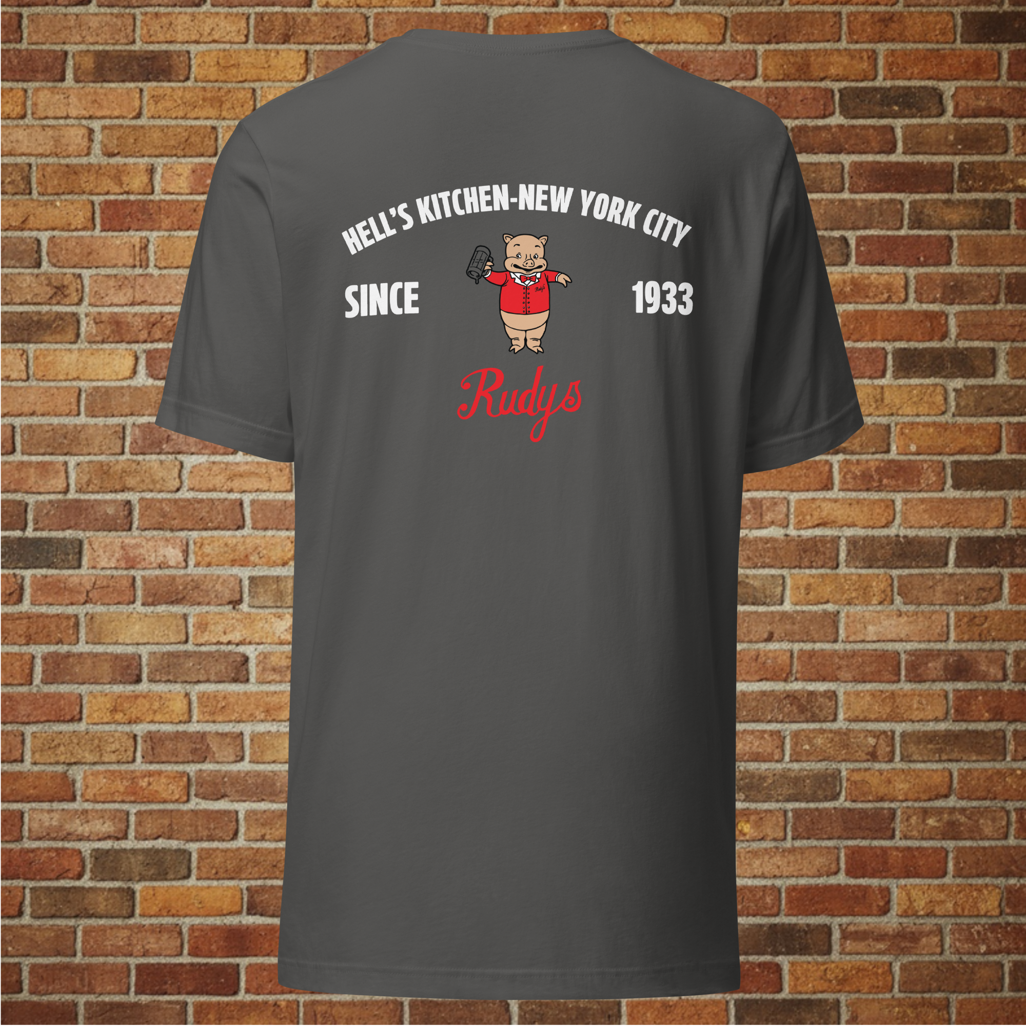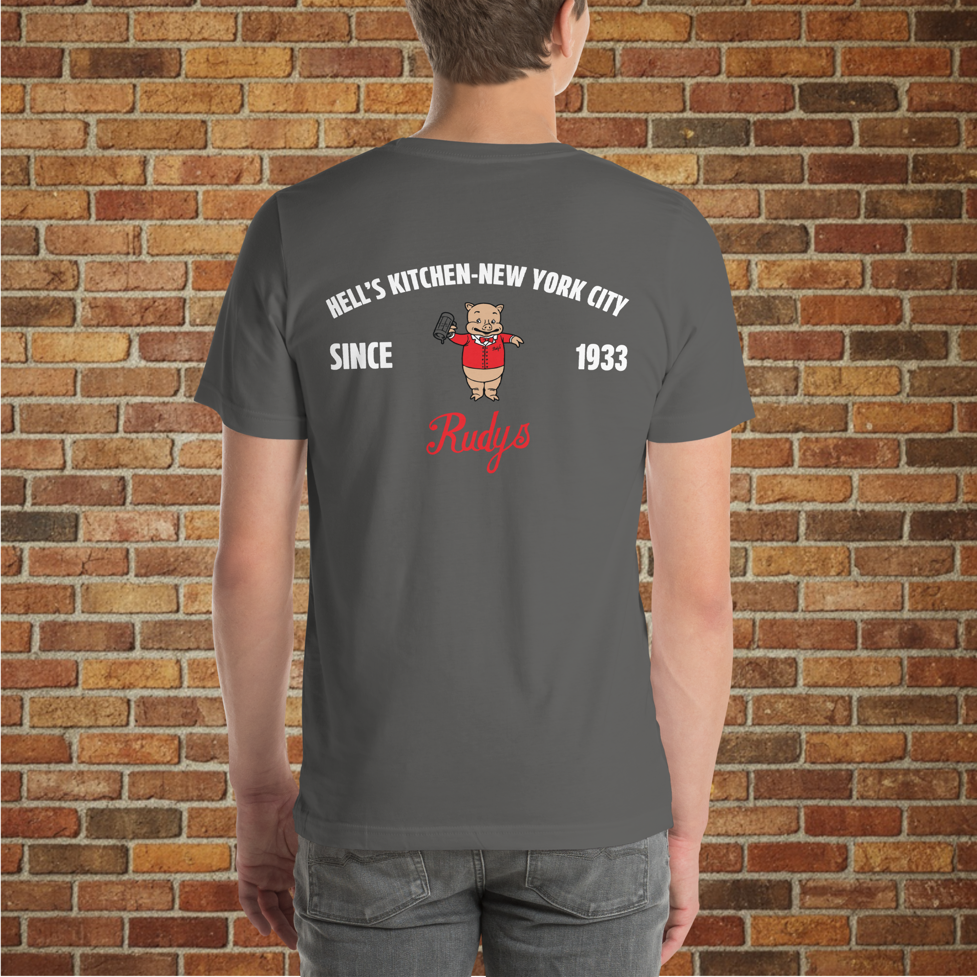 Rep Hell’s Kitchen the Rudy’s way with this pig‑front, no‑frills unisex tee.